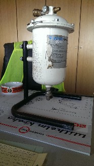 Zuführung durch Pressluft. Im Behälter werden aus der Pressluft Wasser- und Öl-Bestandteile abgepsaltet.